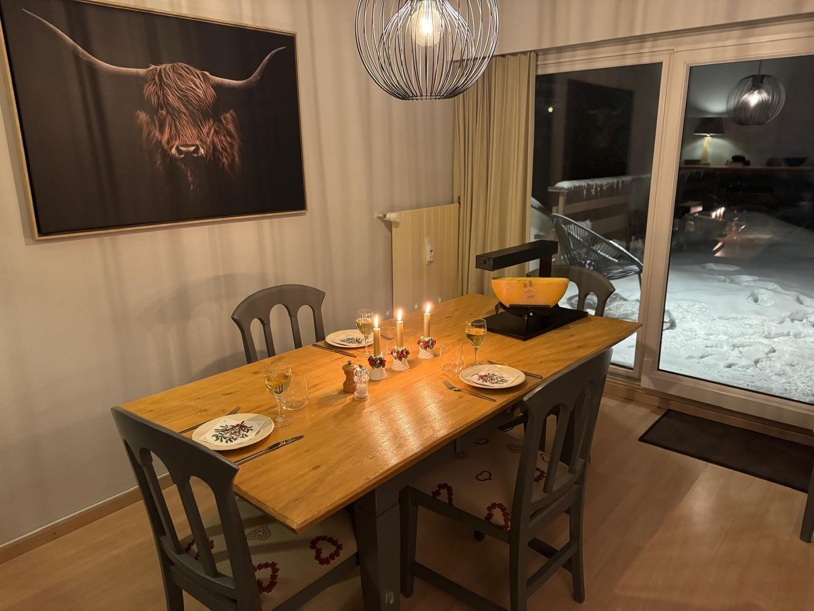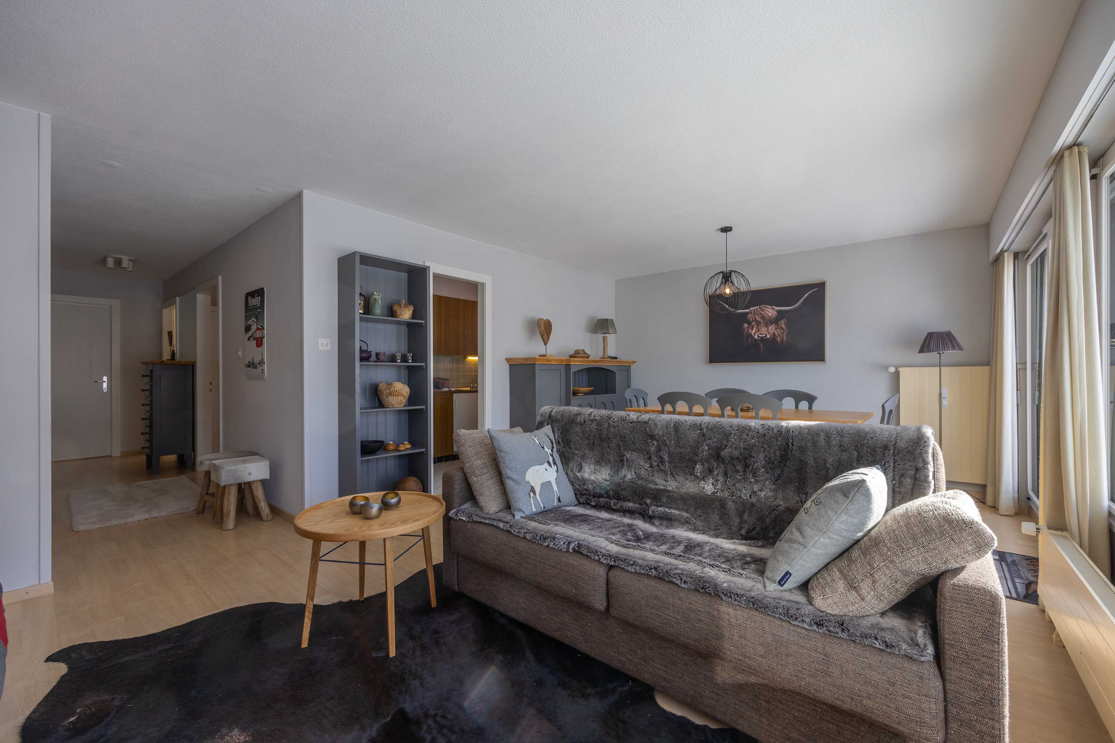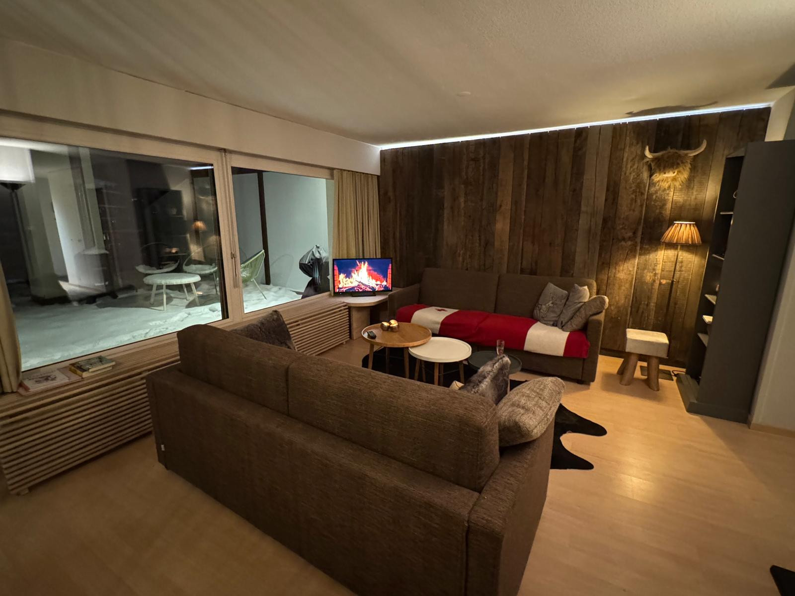 * Living room, dining room with large sunny terrace, view of the Tracquet ski slope.