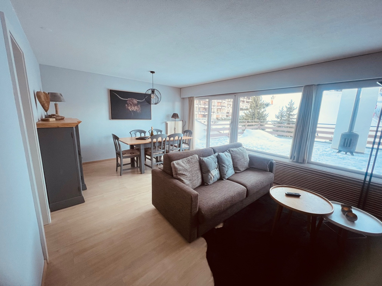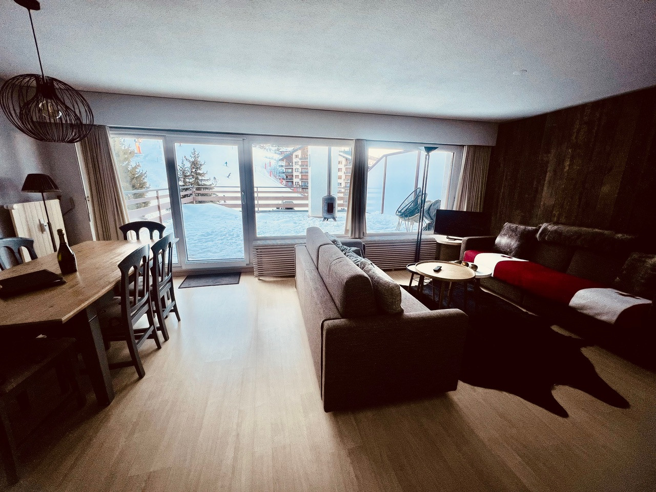Penthouse renovated in 2023 opposite the Tracquet cable car and at the foot of the ski slope.