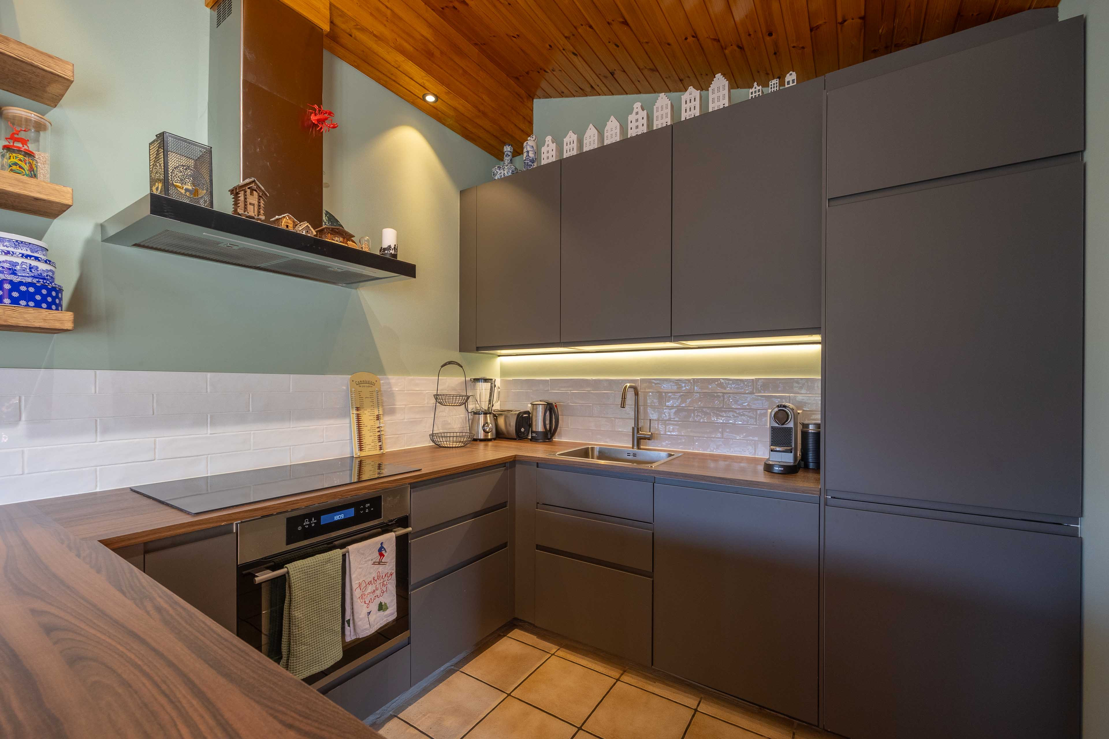 * Cuisine ouverte tout équipée (four, lave-vaisselle, 4 plaques vitrocéramique, four micro-ondes)