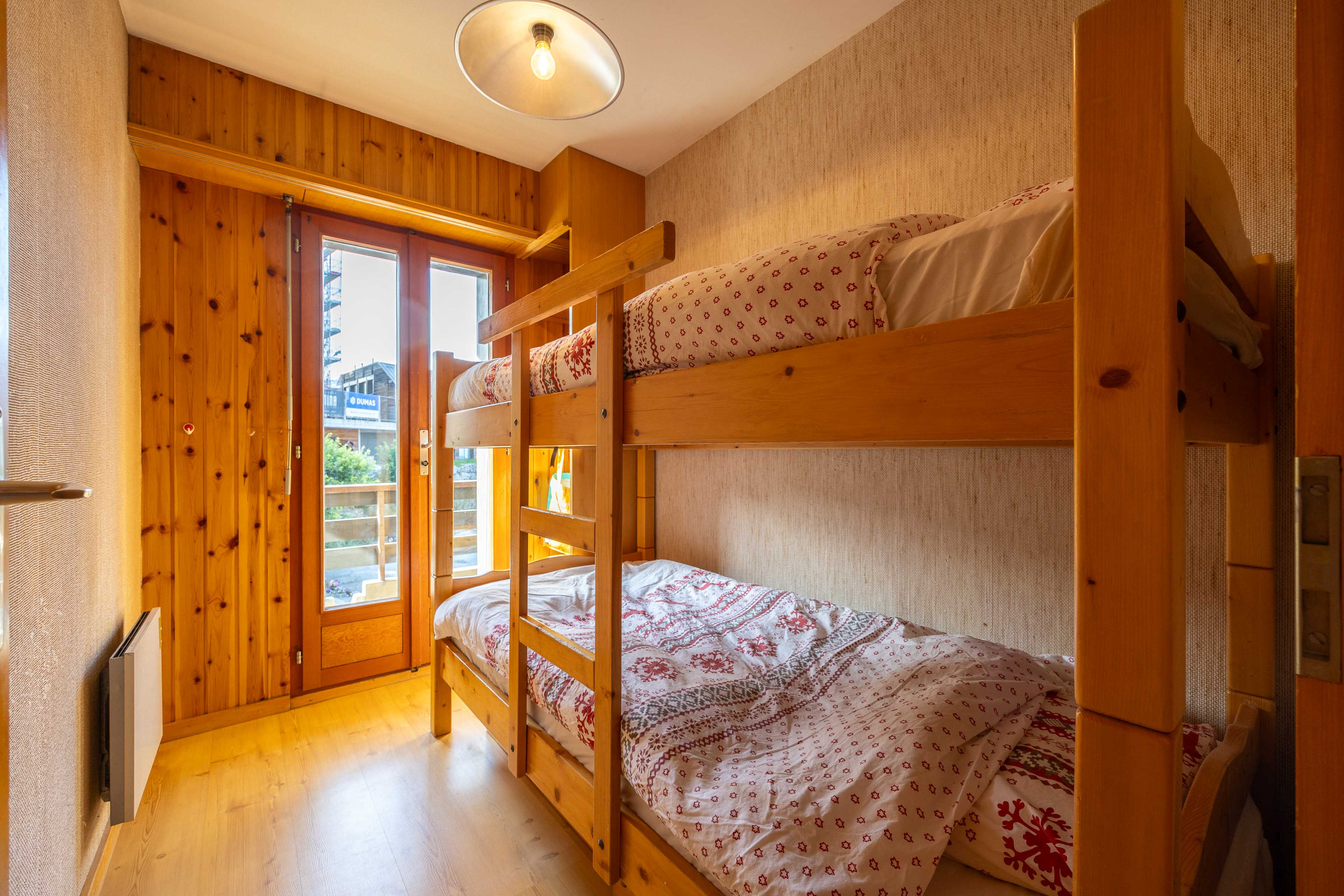 * Une chambre avec lits superposés, accès au balcon