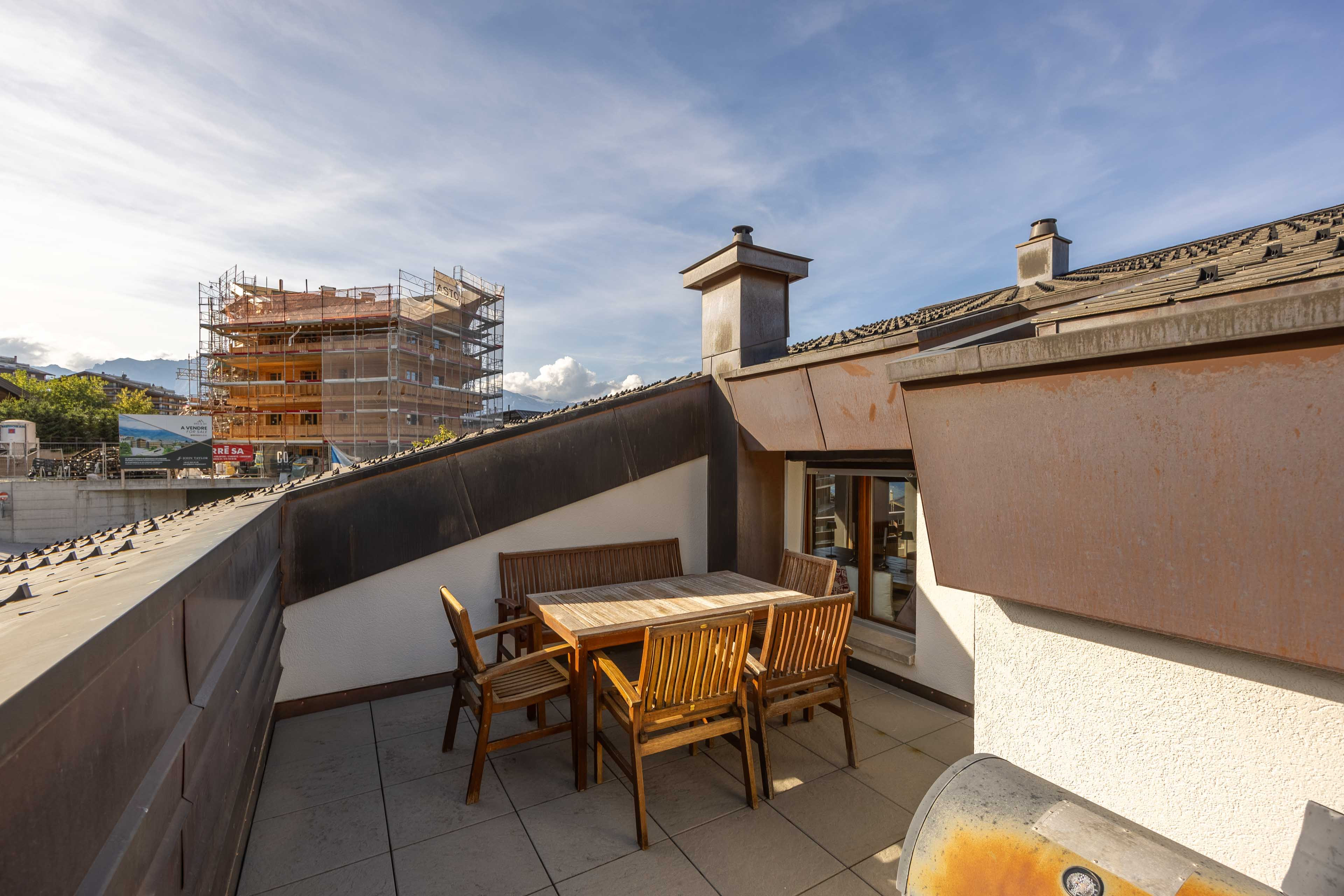 Depuis les terrasses vous aurez une vue imprenable sur le village et les montagnes environnantes et vous pourrez profiter du soleil toute la journée grâce à l'orientation ouest de l'appartement.
