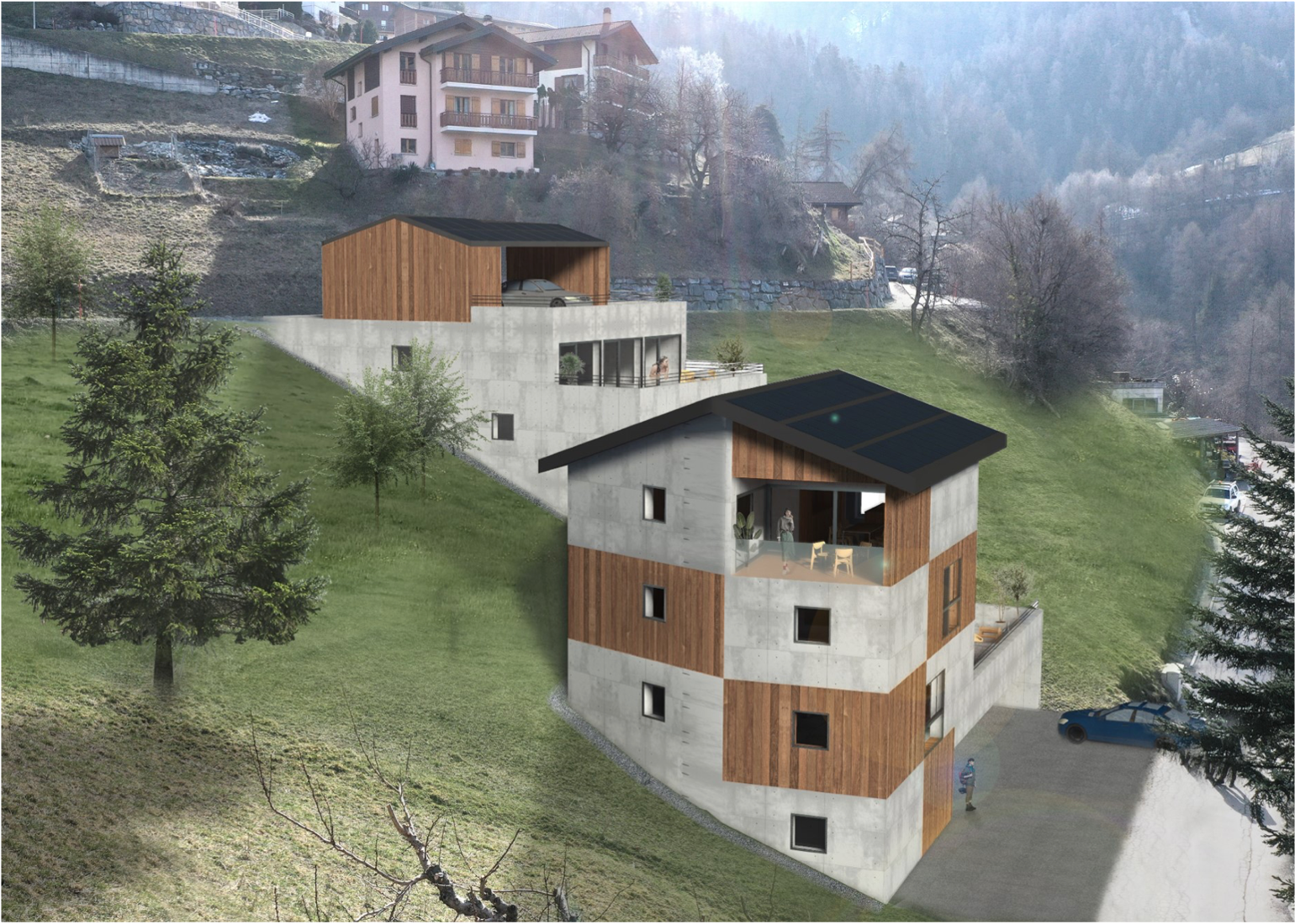 The upper building, called Les Terrasses du Planard, will be accessible via the Route du Planard. It will feature terraced architecture.