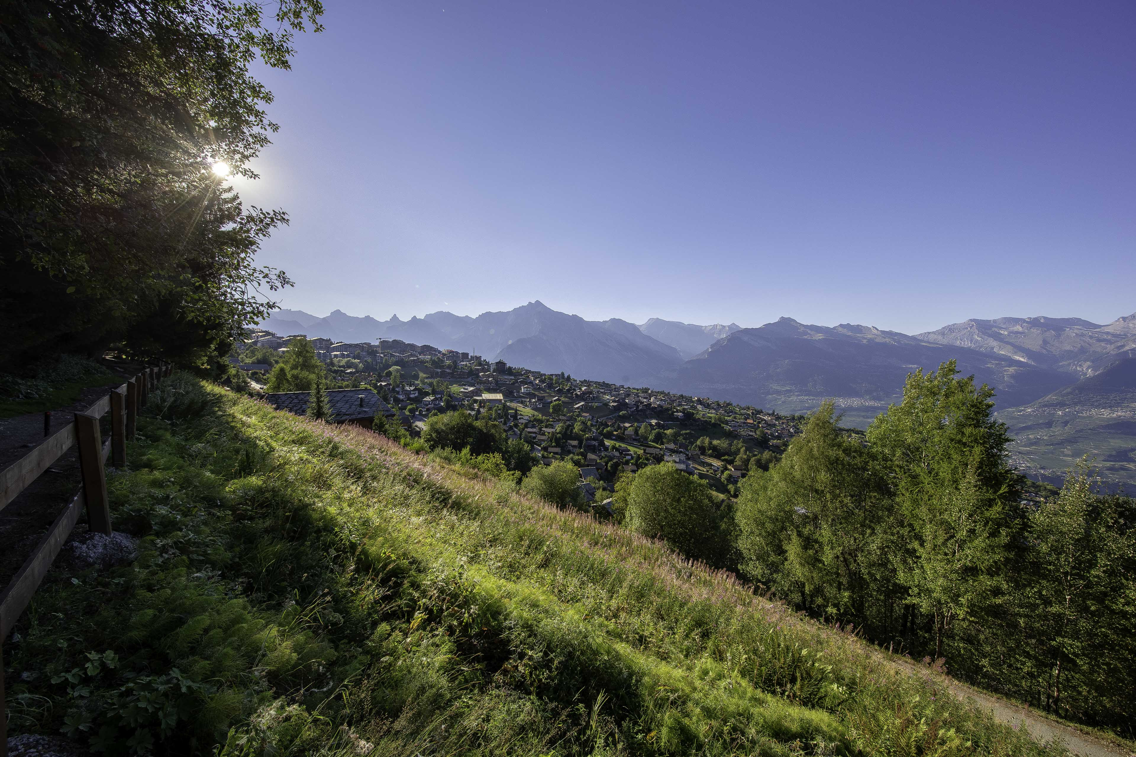 The place called Les Sérandes where the land is located offers a beautiful view of the Rhône valley and the Bernese Alps. It is bordered by the Bisse du Milieu, a starting point for pleasant family walks.