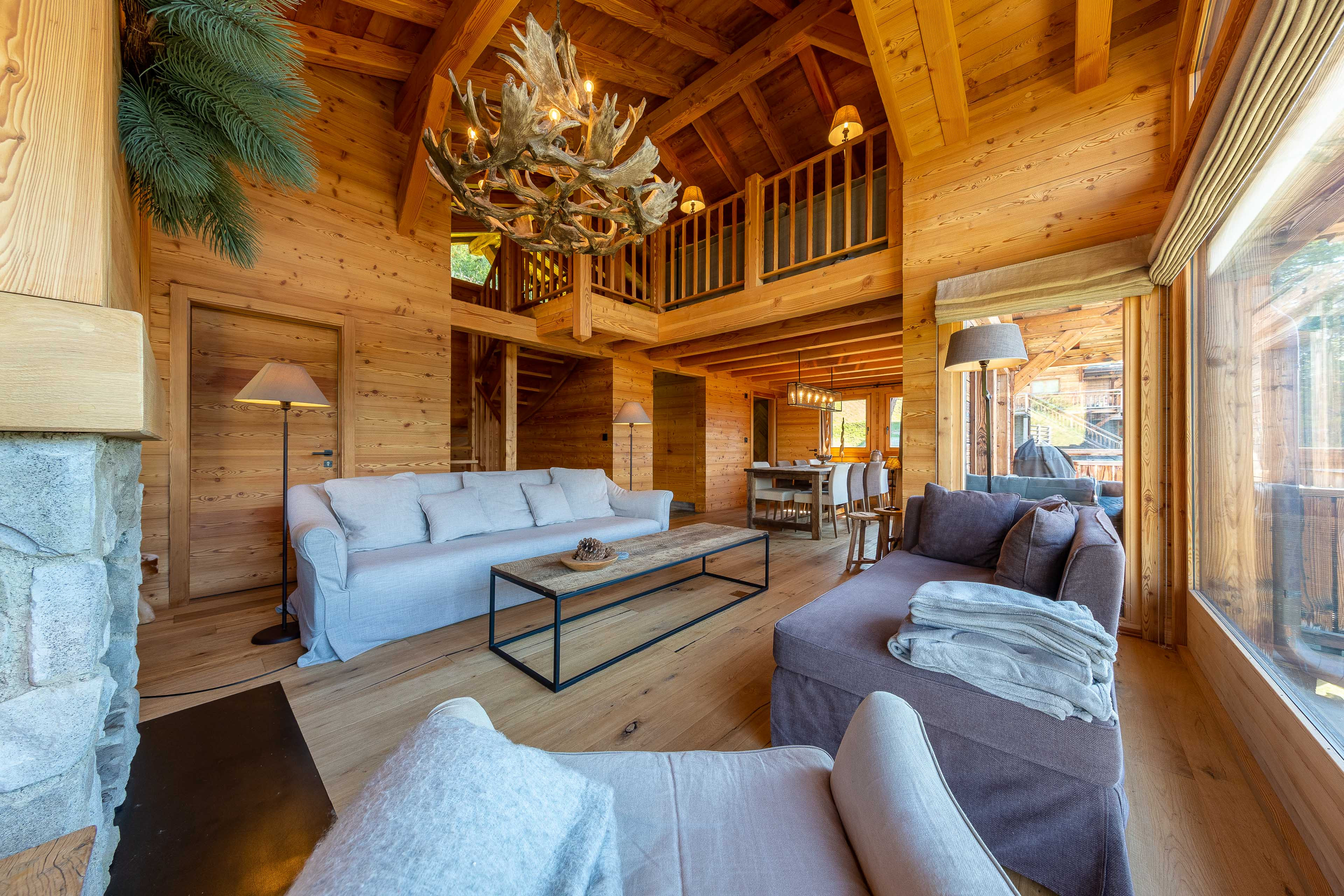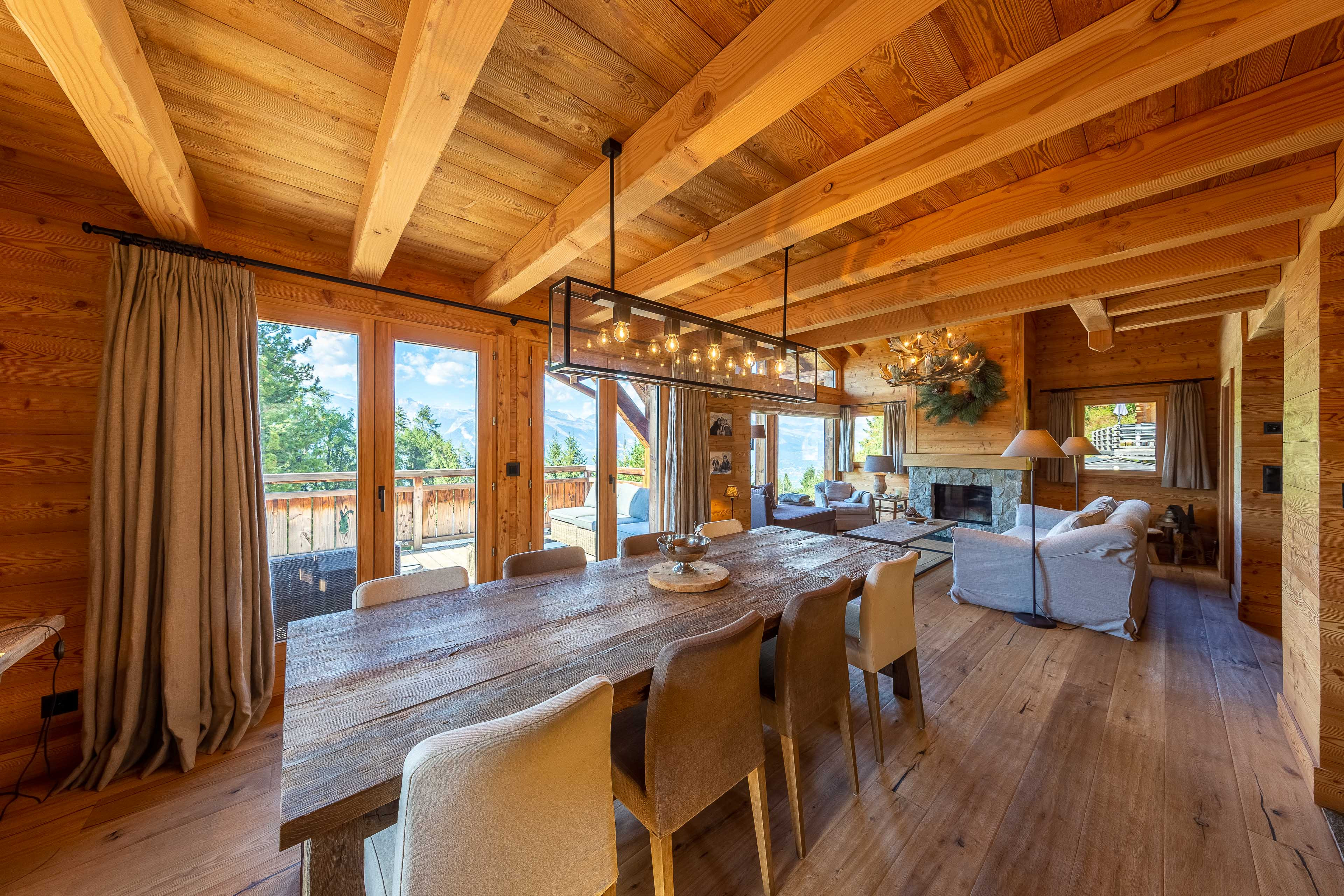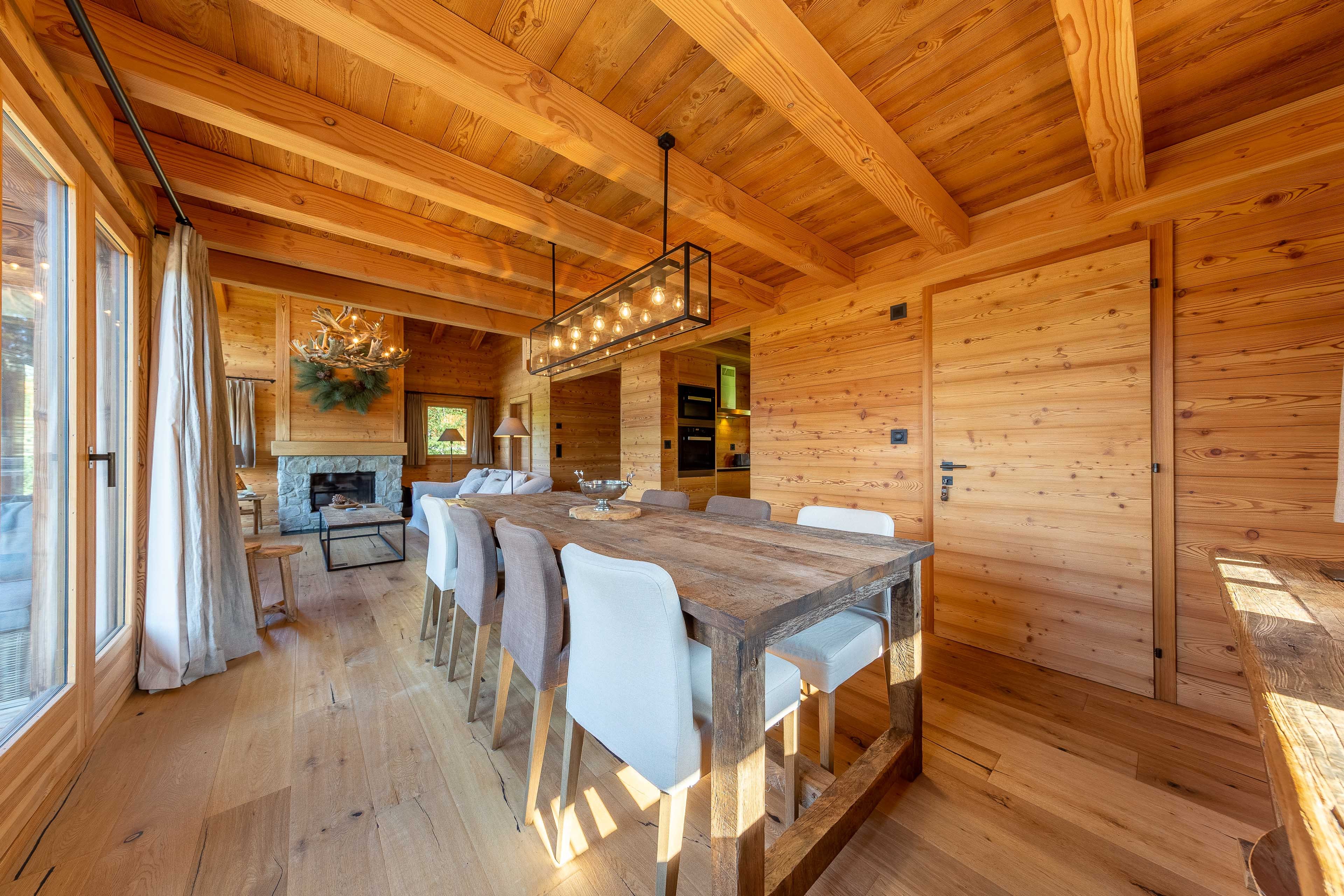 * Grand salon/salle à manger avec cheminée
