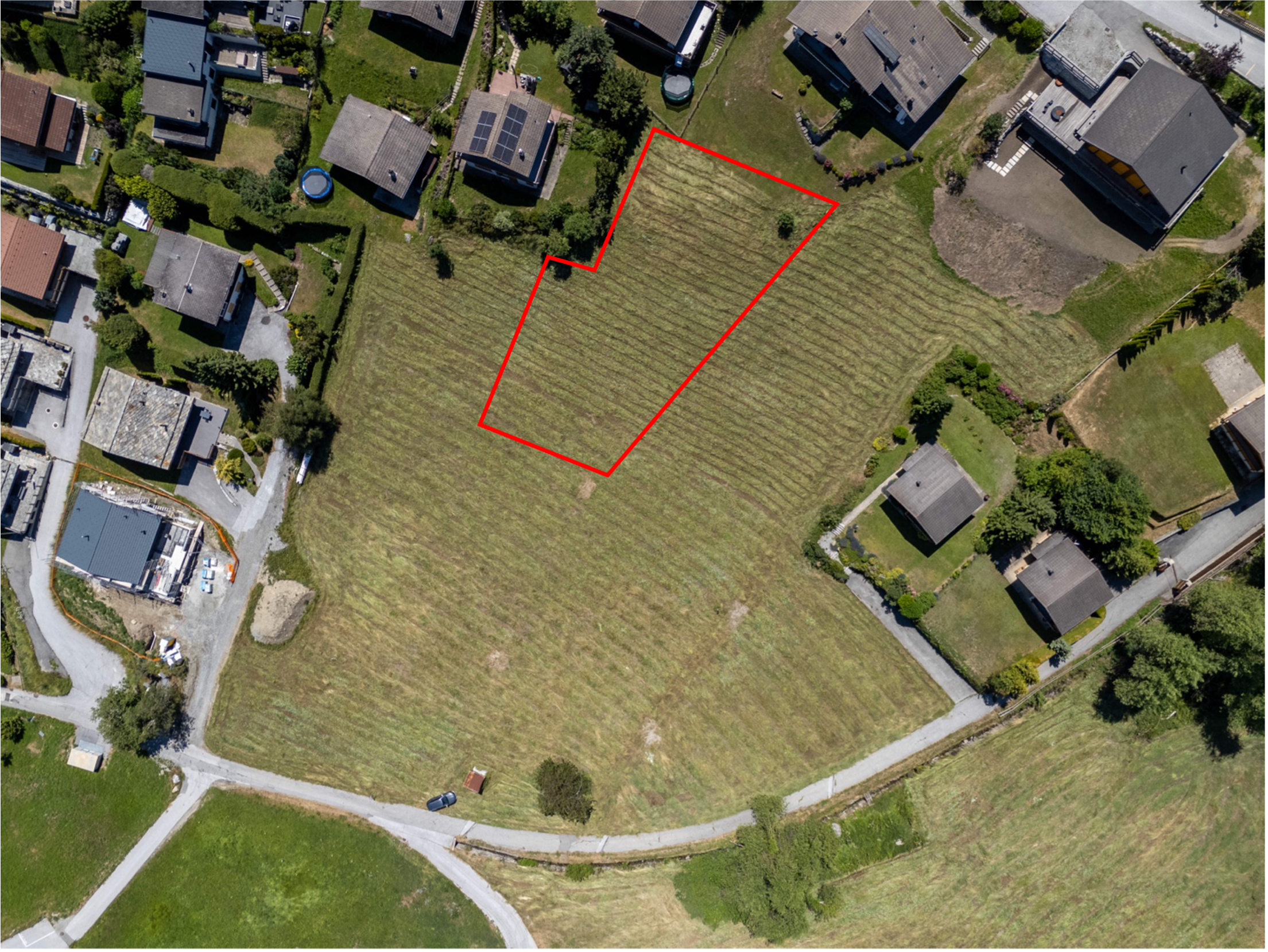 Groot bouwrijp terrein zonder mandaat in een woonwijk vlakbij het centrum van het skioord met prachtig uitzicht op de Berner Alpen